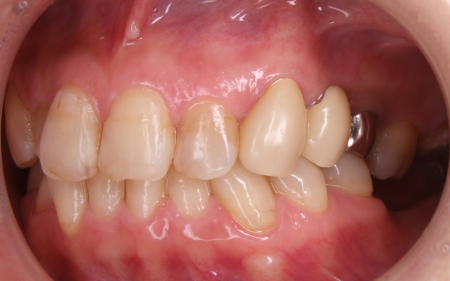患者様の状況では、インプラント治療単独と矯正治療単独の治療が困難だったため、インプラント専門医と矯正専門医で上記情報の共有をしっかり行い、治療を進めています。